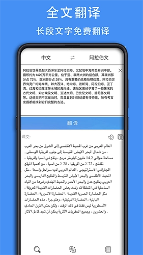 4.具备全文翻译功能,可实现阿拉伯语与汉语之间的长段文章互译。
