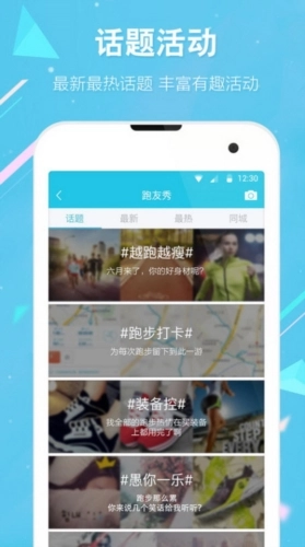 2、跑友秀:吃穿搭配、跑练技巧,参与每日话题讨论,和小伙伴们分享你的运动瞬间,让大家为你点赞!