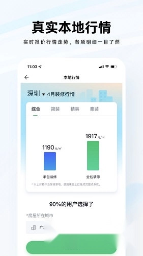 5、行情:我们整理了丰富的装修行情信息,海量的装修行情数据都能让您快速获取