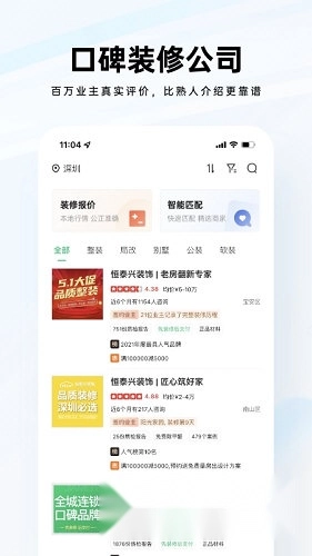 2、智能匹配:依据您的装修需求,能够快速匹配合适的装修公司,省去更多操作环节