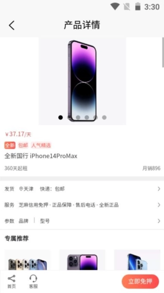 3、提供无门槛租机服务,涵盖了当前主流机型