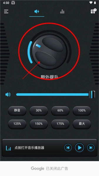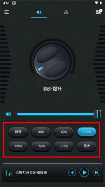 最大音量增强工具,可将音量提升至200%,支持快速调节,通过音量增强滑块或30%、60%、100%及最大档位按钮即可操作。