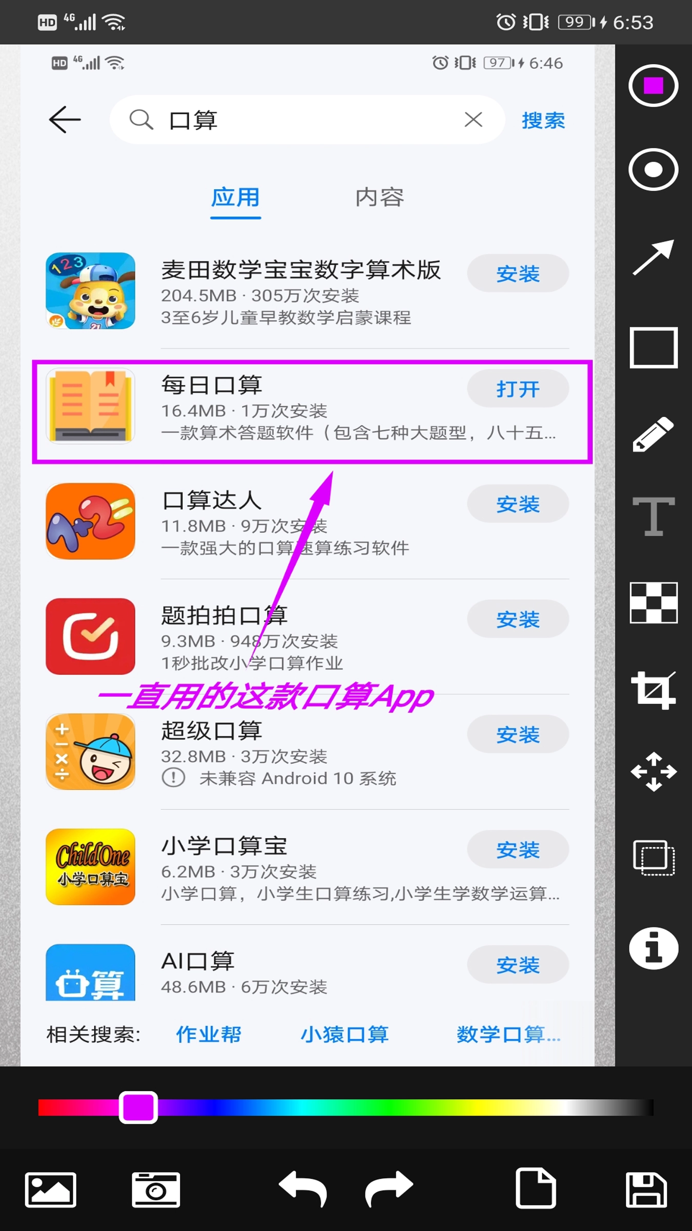 箭头功能:用于绘制箭头,能够与“画笔颜色”和“笔触宽度”搭配使用。