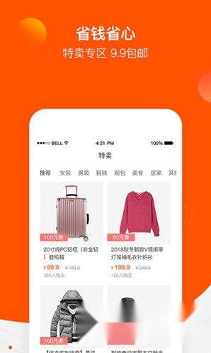 3.分类涵盖女装、男装、鞋袜、箱包、母婴、美妆、美食、配饰、居家、家纺等类别。