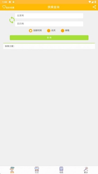 1、进入换乘页面,输入起始点,获得换乘方案;