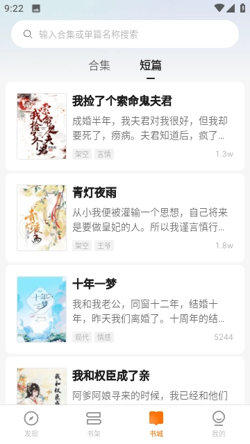 1、进入爽读小说的书城页面后,可立即浏览平台提供的各类小说分类列表,也能直接搜索查找小说。