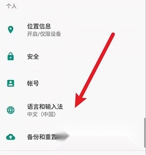 3、进入设置后,点击【语言与输入法】;