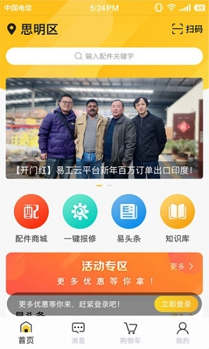 易工云是一款面向机械工程行业的综合性服务软件,用户可在此采购配件——所有配件均为行业正品,质量可靠,由厂家直销,价格实惠;同时还提供一键保修、学习等服务。用户还能通过推广获取佣金,平台也会定期推出限时优惠活动,为用户带来独特的采购体验。