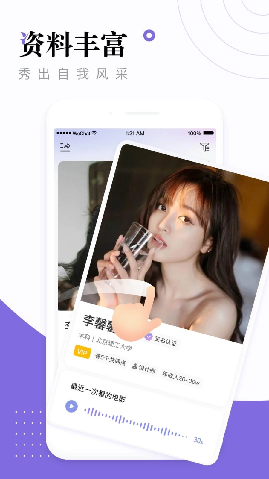 3、聚焦于用户的相亲功能,细致且精准,界面新颖,操作十分便捷。
