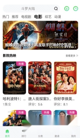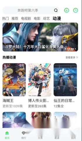 首先打开竹叶视频,在首页底部能看到热门推荐、电视剧、电影、综艺、动漫等分类。各类热播的电视剧和电影都能观看,一些在其他影视平台需要付费的内容,在这里也可以直接观看,并且平台会实时更新影视资源。