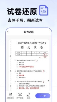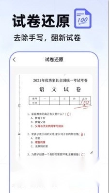 【试卷还原】只需拍一张照片,就能还原出接近打印的效果,方便对试卷进行归类整理,也便于后期复盘,堪称复习的得力助手!