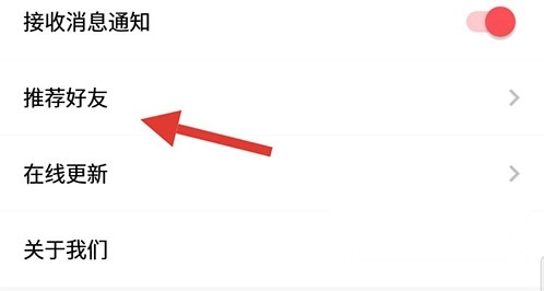 2、进入设置页面,在页面找到推荐好友选项;