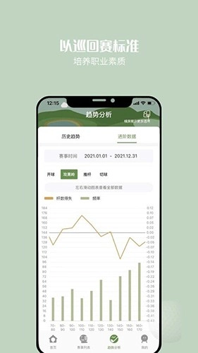 2、能够对球员的打球数据展开分析,像击球距离、球道上球率以及推杆成功率之类的指标都在分析范围内