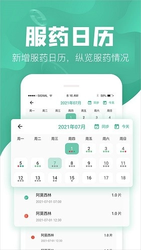 4、支持服药记录功能,可留存服药历史信息,通过选择时间段就能查看对应的历史服药记录。