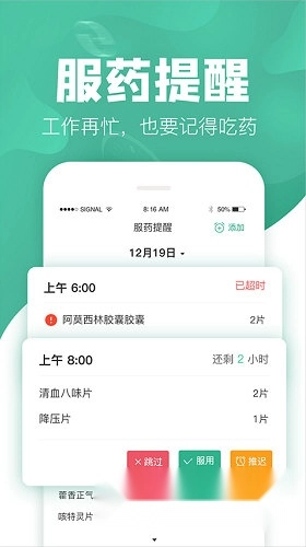5、在线就能管理自己吃过的药物,还能自行设置或关闭各类提醒,涵盖服药提醒与买药提醒;