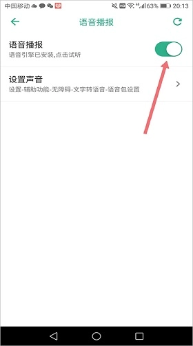 3、最后在打开的新页面里,找到【语音播报】右侧的开关按钮并点击,将其切换至开启状态就可以了。
