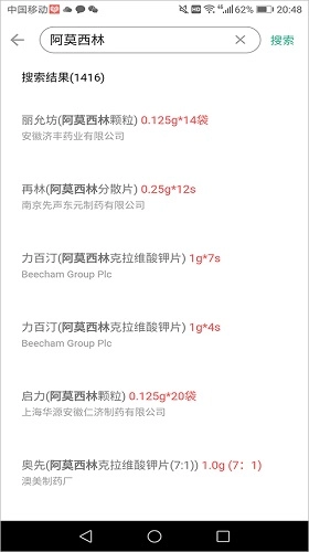 2、在新打开的页面里,依据药品的具体名称和具体生产厂商来挑选药品