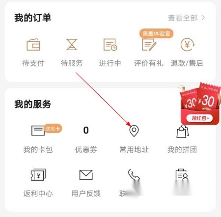1、打开河狸家,点击“我的”,再点击“常用地址”