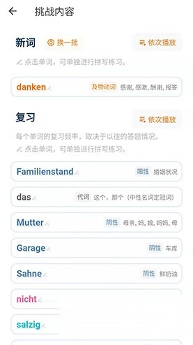 在这里可以进行单词挑战,让你对每天的单词进行巩固