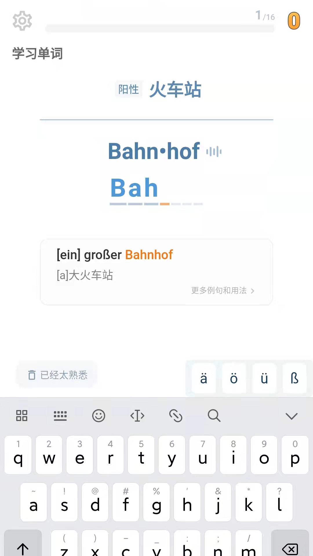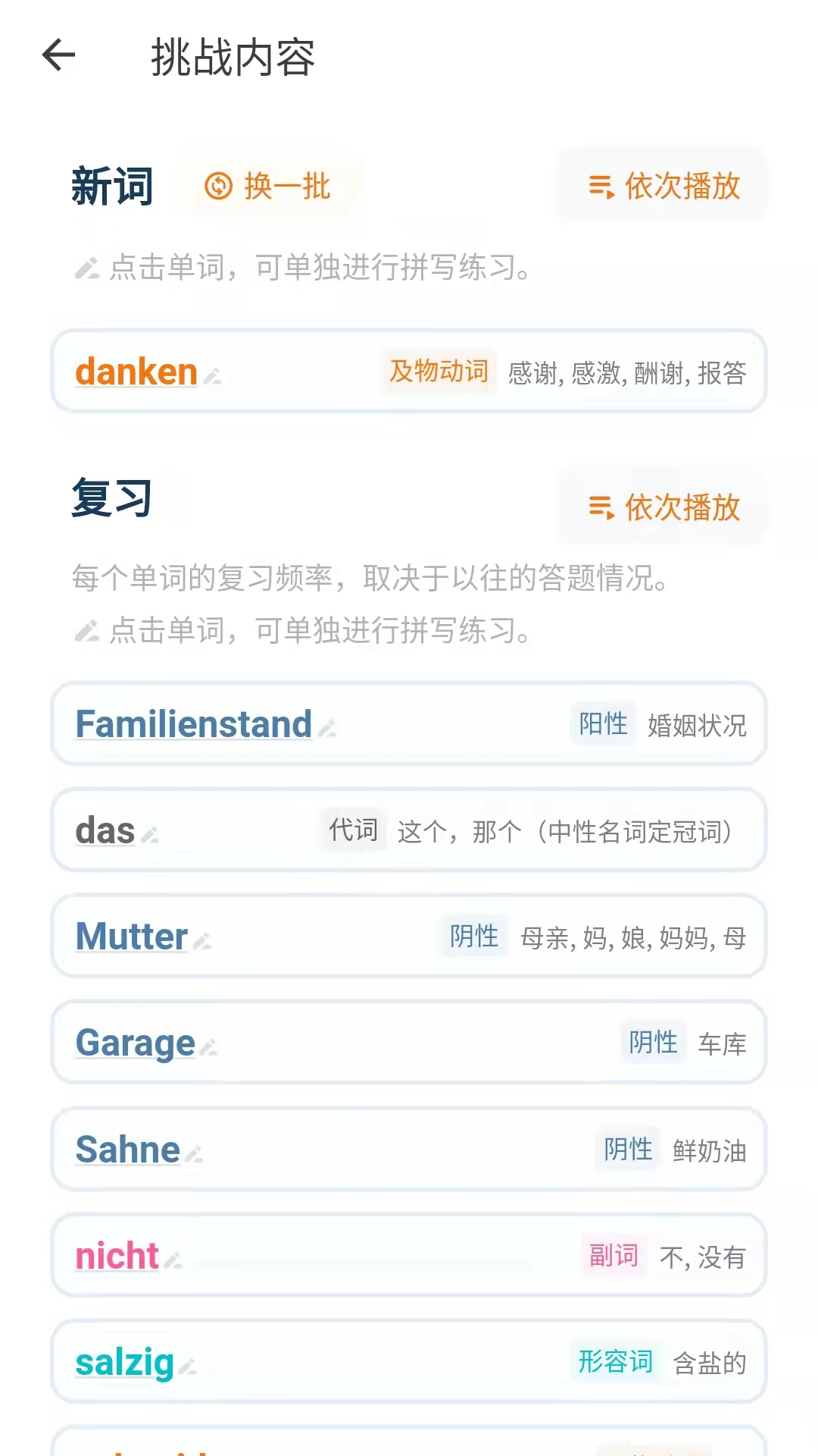 在这里进行德语单词拼写练习,增强每一次的记背效果