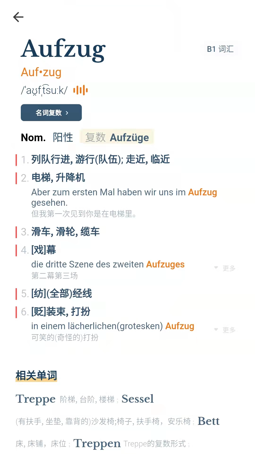内容涵盖单词释义、读音、例句,以及各类动词的变位形式、形容词的词尾变化、名词的复数形式等,旨在让学习者对每个单词进行全面且充分的掌握。