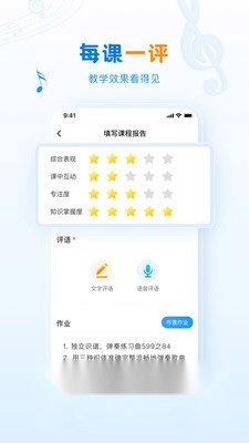 泛德音乐老师端APP的奖惩系统与智能评估系统,让学员管理变得轻松高效。师生间的视频共享与互动为音乐教学增添了便捷性。该应用不仅具备统一管理后台,还支持教师随时查看学生的学习情况。我特别欣赏它的多功能性,涵盖编辑发布、作业管理等功能,让教学计划更具灵活性。