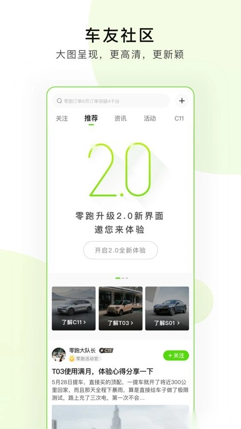 这是一款能随时接入汽车、领跑智慧生活的互联软件。在车友社区里,你可以随时了解大家的动态,还能在线查看附近的门店和新鲜资讯。它为你提供创新的出行方式,是引领未来生活的移动平台。
