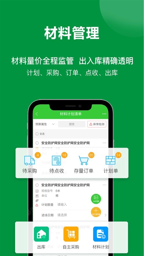 4、全新材料计划支持AI识别在内的9种录入方式,且可实现实时保存功能