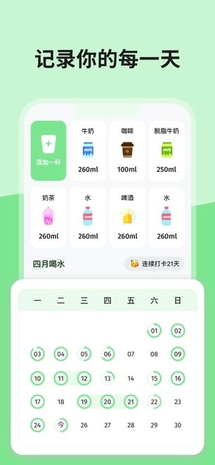 ·丰富饮品记录选项:支持记录各类不同饮品,助力您更个性化地管理饮水记录。