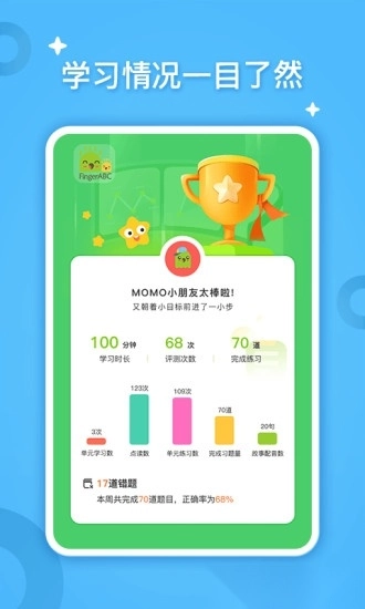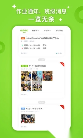 作业通知与班级消息都能清晰查看,在寓教于乐的模式下,有更多趣味AI互动可供体验,不仅能进行发音测评,还能通过配套习题来强化巩固所学知识!