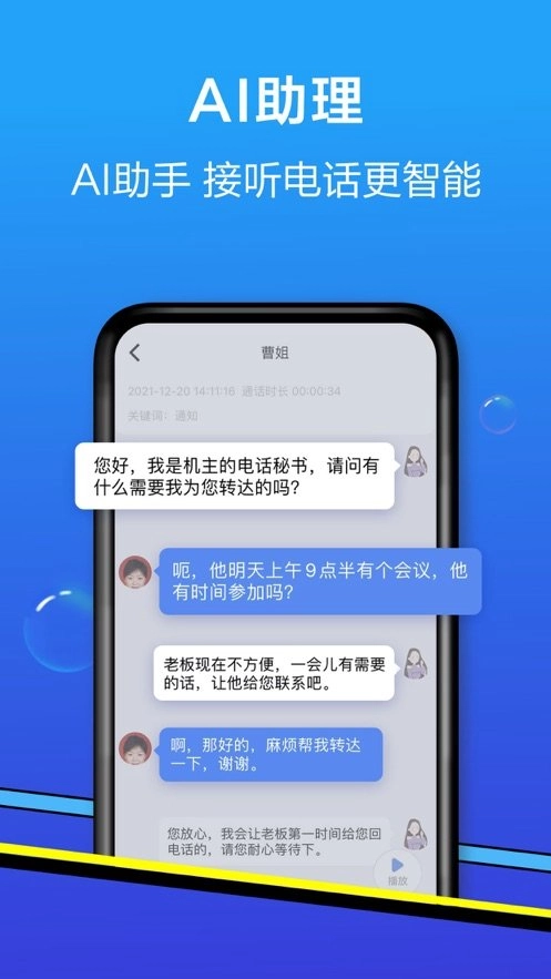 【情景接听模式】当处于临时不便接听的场景时,系统会对来电进行分级管理,部分来电可正常接听,部分则会被自动拦截并向对方告知原因,所有通话记录都会完整展示。