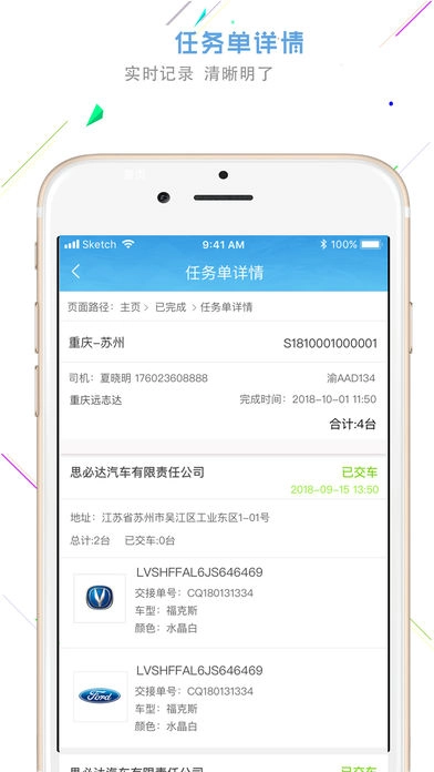 展示任务单列表,当展开任务单信息后,能够进入详细界面,呈现任务单以及车辆相关信息。