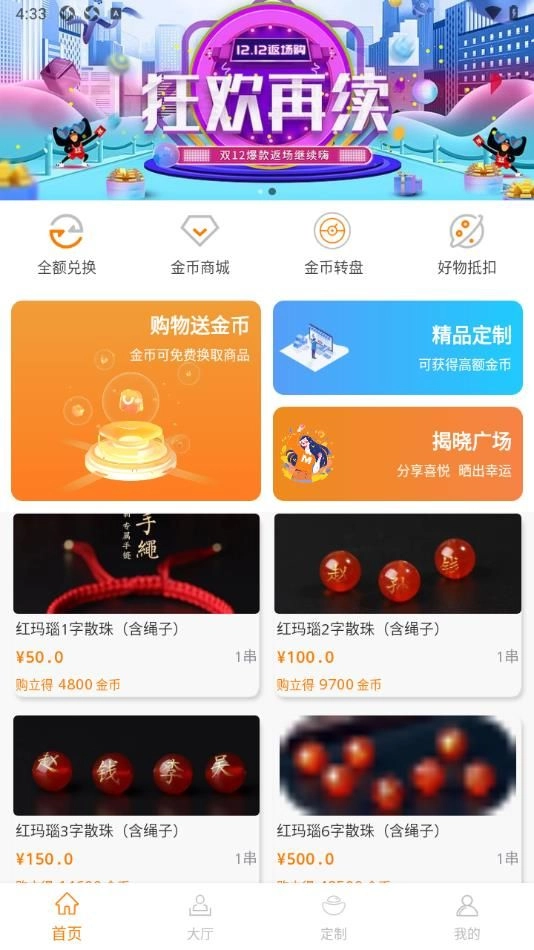 4.购物时,你不仅可以获得金币,还能体验精品定制服务——通过定制的形式来获取自己需要的商品,同时享受高品质的服务。