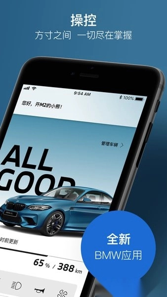 - 车辆:助力BMW新车主一键激活互联驾驶服务。远程访问并管理您的座驾,轻松调节车内温度,便捷查看剩余油量、充电状态和续航里程等关键信息,驾程状态一手掌握。