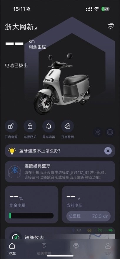 蓝牙连接二轮电动车后,能够直接在线控制车辆的电源开关。