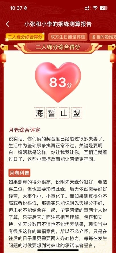 这是一款的算命合婚择吉占卜工具,能查看八字大运流年对应的十神藏干、神煞纳音,以及干支合化冲的作用关系,还支持时辰不详时起盘,助力区分记不清出生时辰的八字。