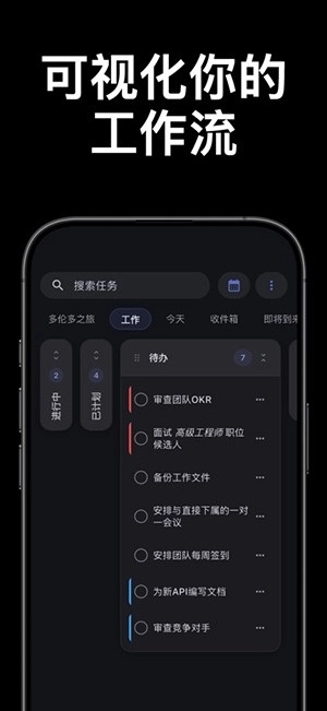 通过高级AND/OR筛选逻辑,可构建无限自定义列表。支持多级排序、分组功能,能直观可视化任务分组,还具备强大的全局文本搜索能力。