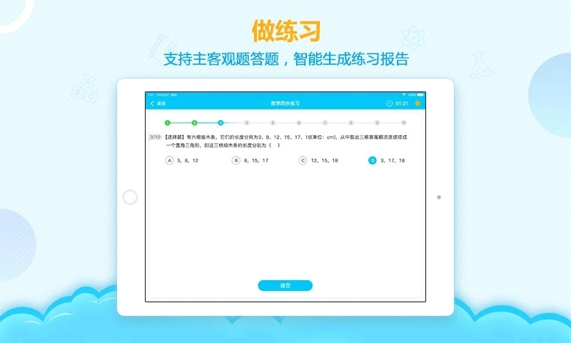 全科覆盖:用户能够同时学习多个科目,点击科目类型就能快速切换。