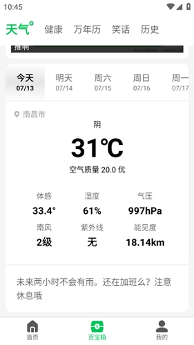 4、还可以在百宝箱的天气功能里看到的天气状况