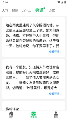 7、当然啦,这款软件还能逗你乐呵,你可以在百宝箱的笑话页面浏览到各种各样的笑话。