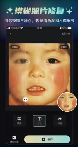 【旧照片修复】借助智能修复功能,能够自动对照片进行修复,从而提升其清晰度。