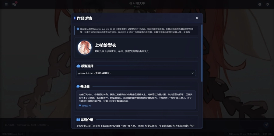 一款能够和各类AI模型聊天的软件——歆爱AI。在这款软件里,你会看到不少角色卡,每张角色卡都预先写明了性格特点和背景故事,你可以挑选自己喜欢的角色卡开启聊天。里面的AI十分智能,会依据当下的语境以及用户的历史聊天记录做出各种判断。