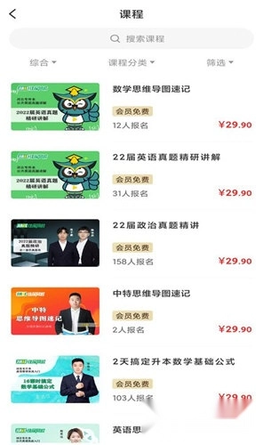 3、海量课程,免费学习。平台上收录了大量优质教学课程,用户可以在平台上自由查看任意课程,所有课程均为免费,轻松浏览。