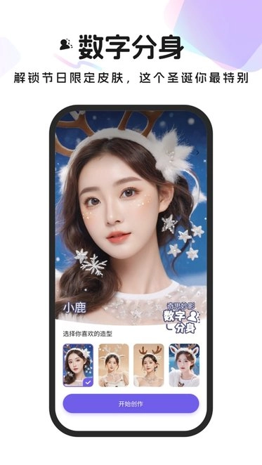 1、「数字分身」新推出圣诞专题风格写真,涵盖复古优雅的丝绒质感、甜美可爱的圣诞甜心、俏皮灵动的雪夜麋鹿,还有平安夜派对主题的破产姐妹造型。圣诞即将到来,快来解锁属于你的专属皮肤吧!