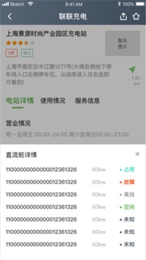 界面查询功能可依据用户实时定位,展示其周边专用充电桩与公共充电桩的具体位置。用户点击选定的站点后,就能查看该站点的详细信息,涵盖充电桩数量、与用户的距离、电费标准、支持的支付方式、开放时段、物业类型以及车位总数等内容。