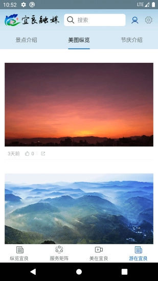 美图纵览,发布大量景点图片,即便足不出户,也能尽情欣赏美景,了解本地景区的相关情况。