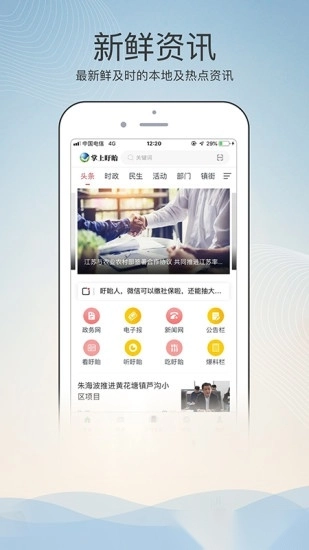 【便民服务】:为市民提供快递电话、家政电话、天气查询、交通查询、办事指南等各类便民资讯。