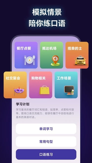 模拟餐厅点餐、结识新朋友、洽谈合作、参加商务会议等日常场景。从单词到句型再到口语,按循序渐进的方式进行学习。
