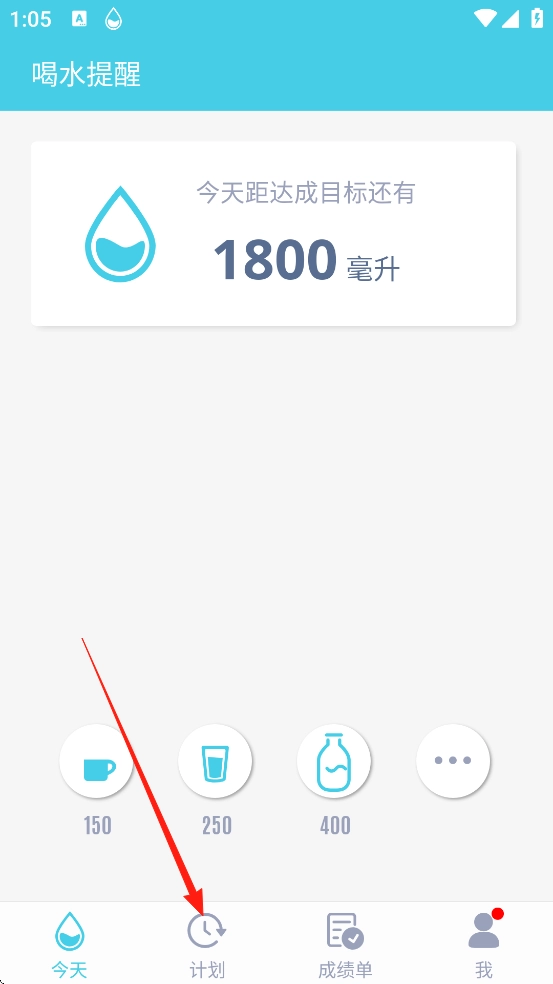 1、开启喝水提醒功能,进入今日页面后,点击底部的“计划”选项,进入喝水计划的设置界面。