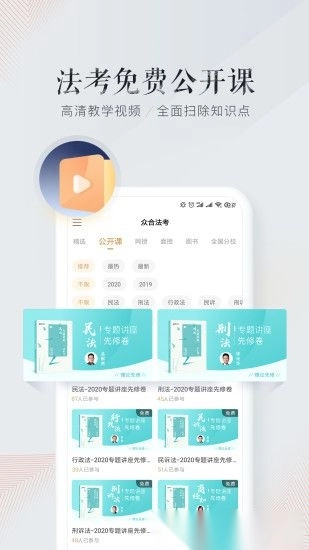 内含八大学科名师公开课,基础先修、真题解析、系统强化……各阶段备考课程无限次畅听,0元体验法考名师课堂。